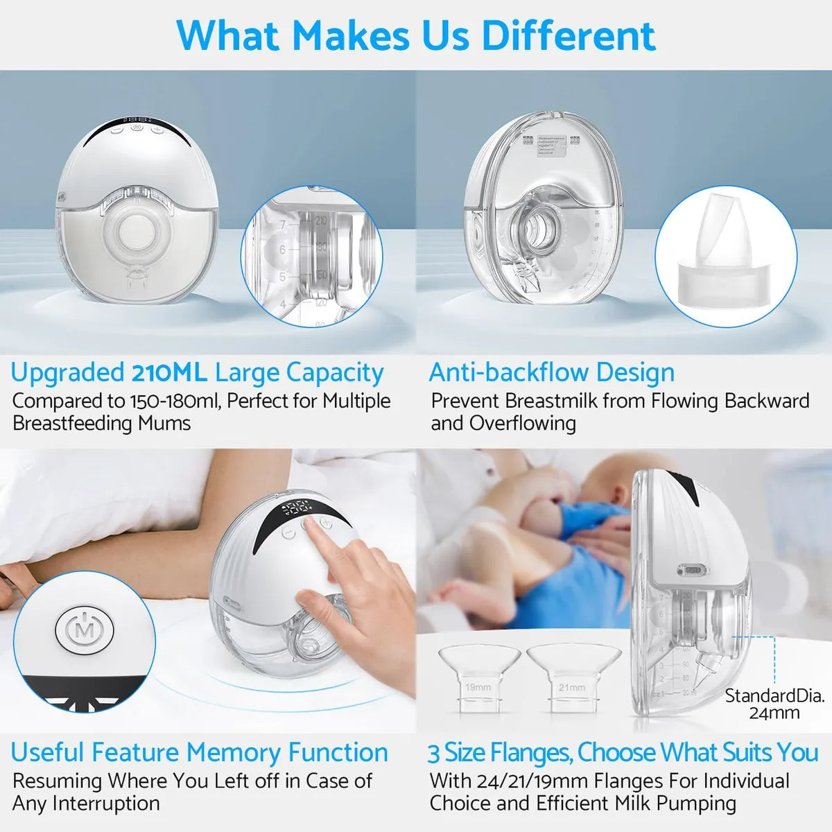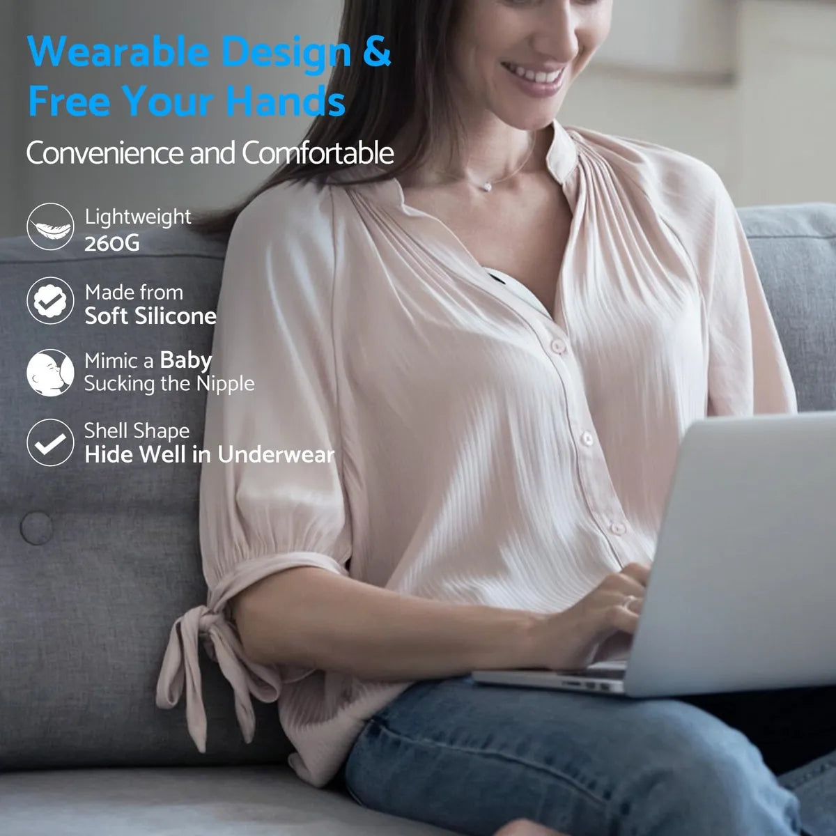 - تصميم "هاندز-فري" (Hands-Free): مضخة لاسلكية بالكامل توضع داخل حمالة الصدر، مما يمنحكِ حرية حركة كاملة للقيام بمهامكِ اليومية أثناء الضخ.